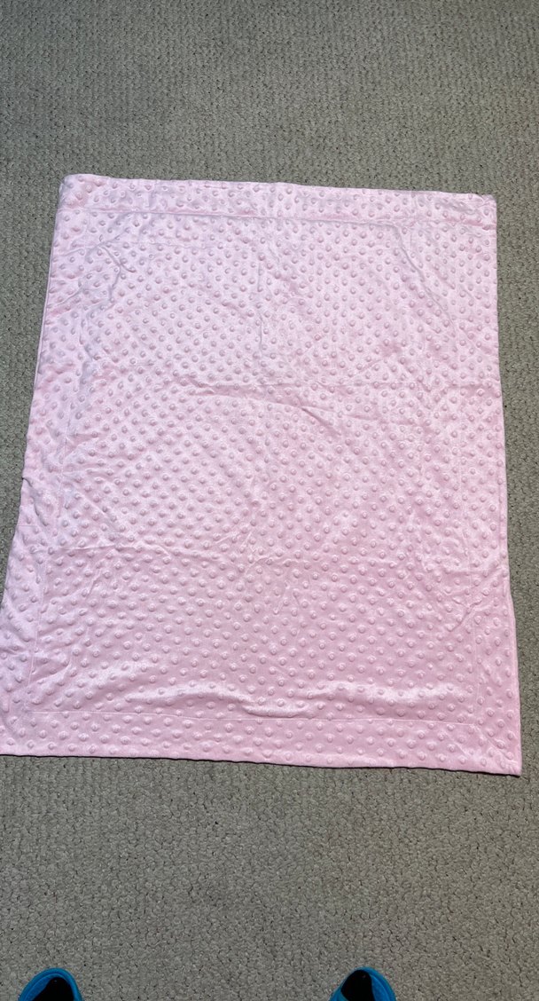 Sentetik kumaştan yapılmış, dokulu nokta desenli yumuşak pastel pembe bebek battaniyesi.