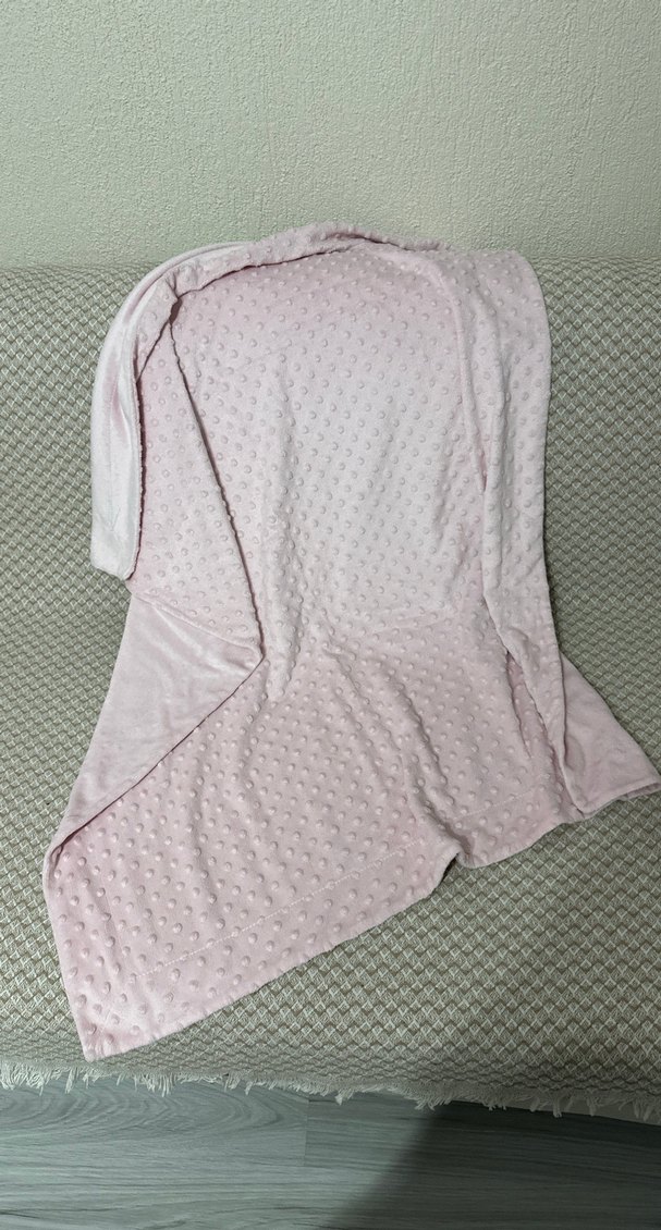 Yumuşak sentetik kumaştan yapılmış, pastel pembe renkte, dokulu desensiz bebek battaniyesi. Rahatlık sağlar. ️nohut battaniye yırtık sökük leke yok