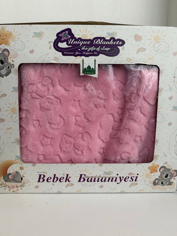 Yumuşak dokulu, kabartmalı desenli pembe pastel tonlarında bebek battaniyesi. Unique Blankets markasına ait.Sayili kullanıldı