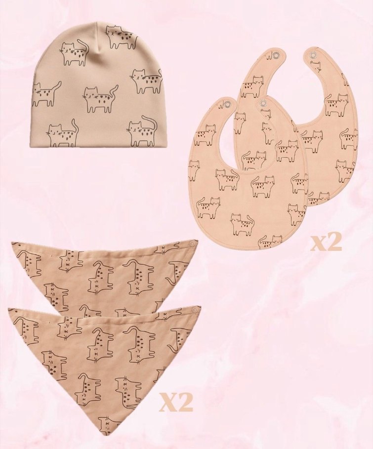 Set içeriğimiz 1 adet bere, 2 adet önlük, 2 adet boyunluktan oluşmaktadır. Ürün standart bedendir, istediğiniz yaş ve ay grubunda kullanabilirsiniz.