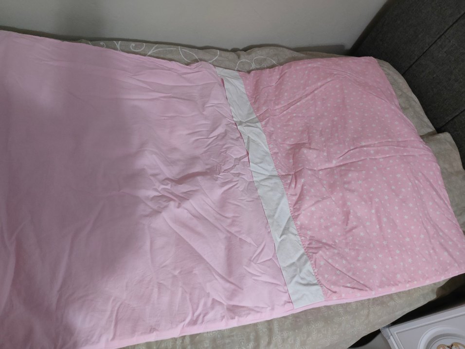 Pastel pembe renkte, yumuşak sentetik kumaştan yapılmış, desensiz çocuk uyku örtüsüdür. Rahat uyku için uygundur.