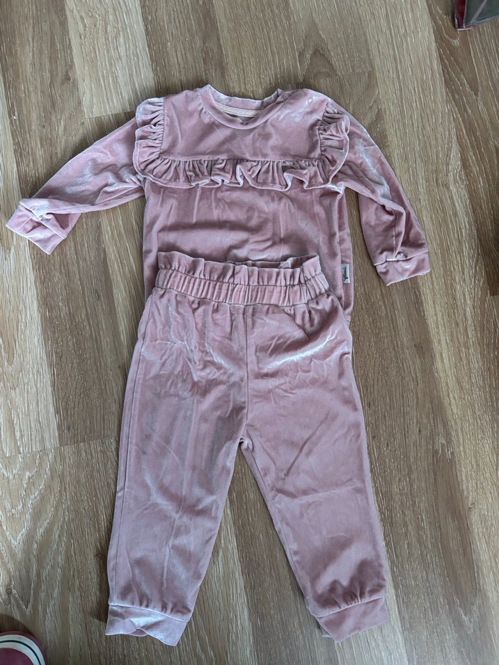 Pastel pembe renkte, uzun kollu ve fırfır detaylı bebek kız takımı. Yumuşak kumaşı rahatlık sağlar.