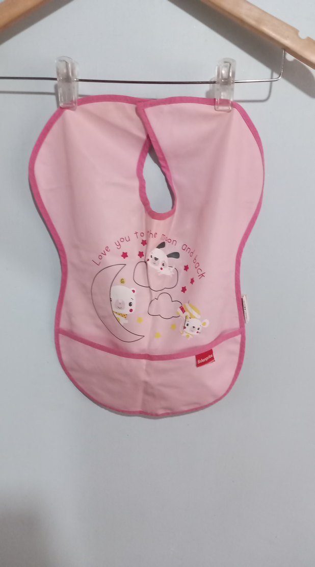 Pastel tonlarda pembe renkli, sevimli hayvanlar ve "love you to the moon and back" yazılı baskılı bebek önlüğü. 40 cm uzun cepli mama önlüğü diğer bebek ürünleriyle birlikte alırsanız daha çok indirim yapıyorum