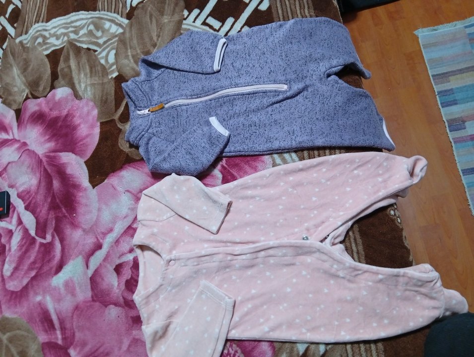 Pastel pembe renkte, yumuşak ve sıcak kumaştan yapılmış, hafif benekli desenli, uzun kollu bebek uyku tulumu.
