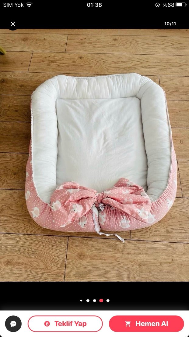 Yumuşak fiyonk detaylı, pastel pembe bebek uyku minderi. ️
