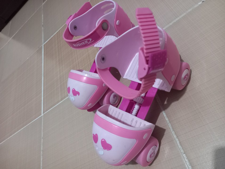 Pastel pembe renkte, ayarlanabilir kayışlı ve sağlam tekerlekli bebek yürüteci. Önünde kalp desenleri ve "RZ" yazısı bulunur. Rahat ve güvenlidir.