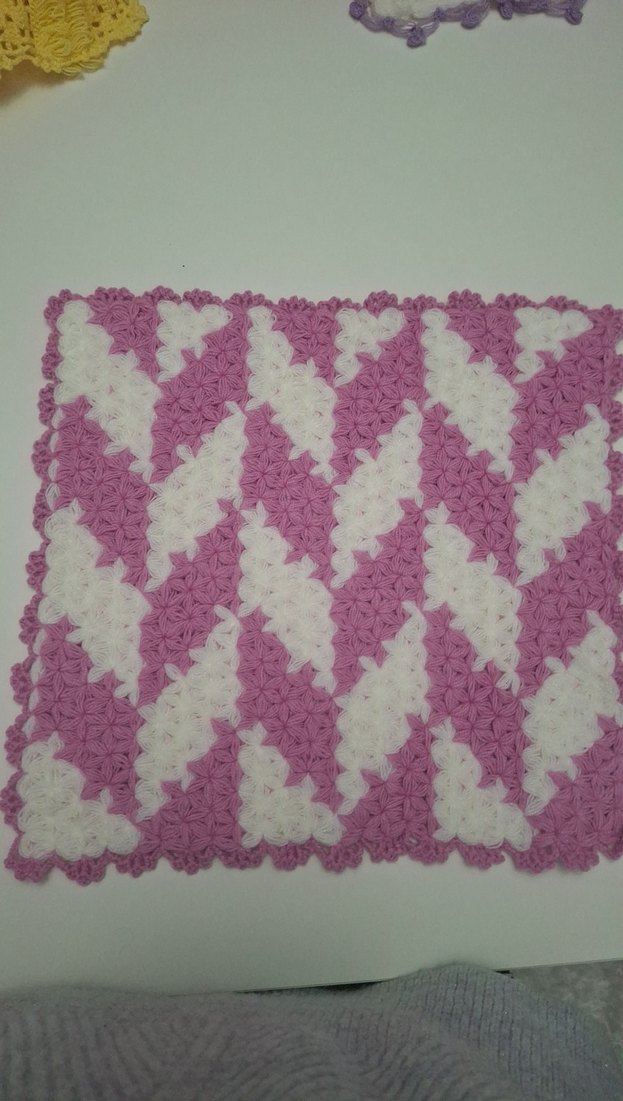 lila ve beyaz desenli, yumuşak dokulu banyo lifi