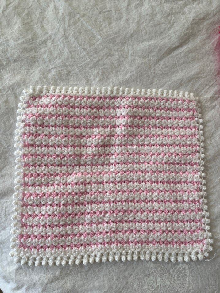 Pastel pembe ve beyaz renklerde, dokulu desenli ve süslü kenarlı örgü banyo süngeri. Cilt bakımı için yumuşak ve nazik. el örgüsü ilif annemin ellerinden destek olmak için alırsanız çok seviniriz