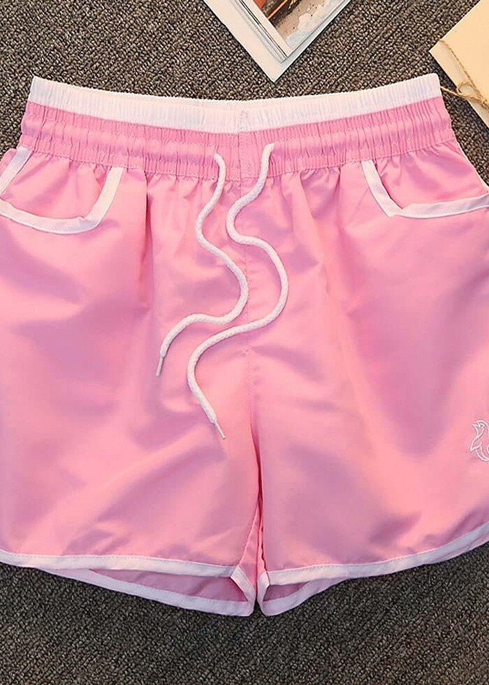 PEMBE BEYAZ ŞERİTLİ DENİZ ŞORTU