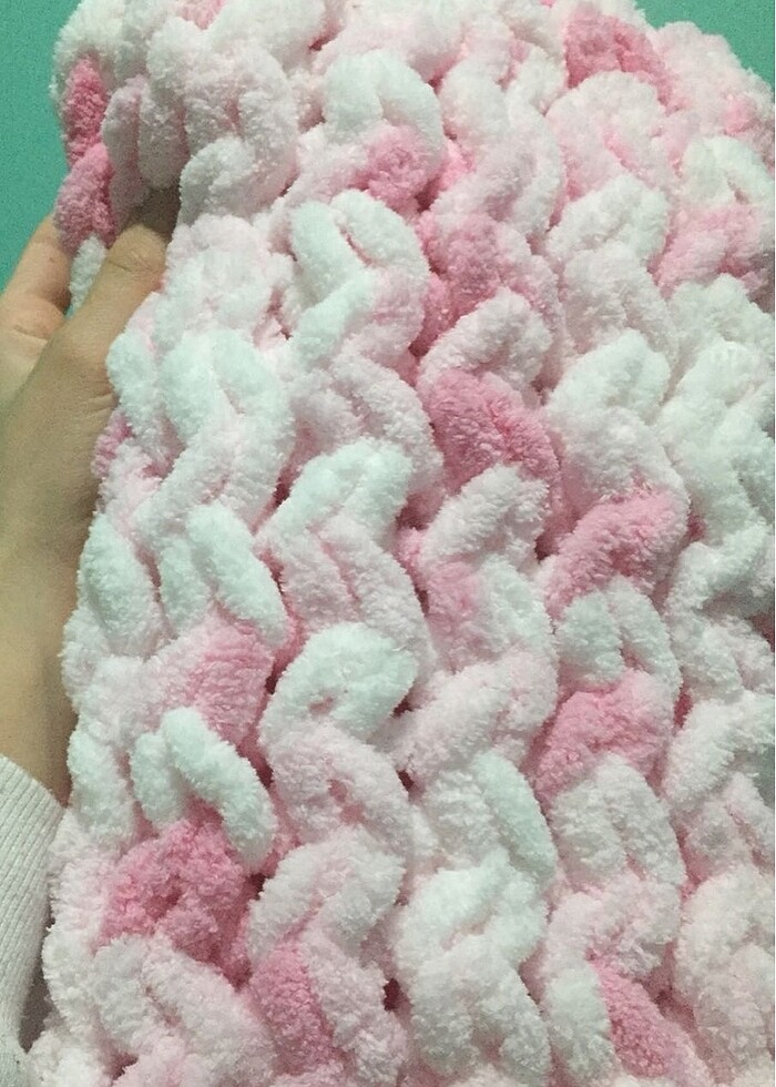 Görseldeki pembe-beyaz renktedir. El örmesi olduğu için sıcacık tutar. Kaliteli ip kullanıldığı için yumuşacıktır. İstenilen renkte örülmektedir.
