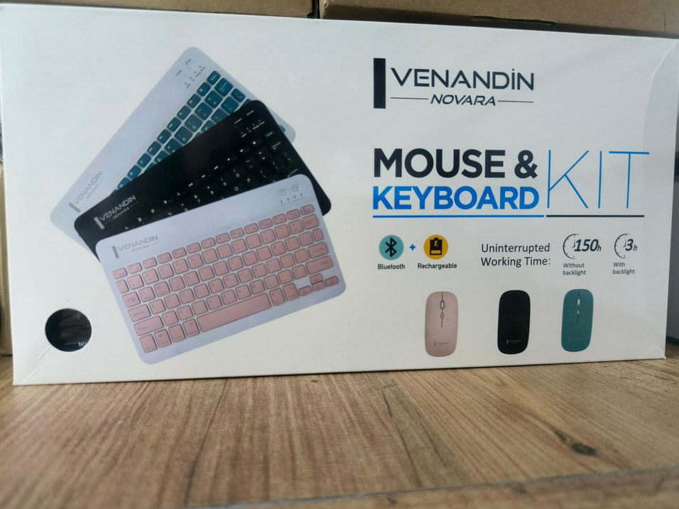 Pembe renkli Bluetooth klavye ve mouse seti, şarj edilebilir ve kablosuz bağlantı özelliğine sahip. Çoklu cihazlarla uyumludur.