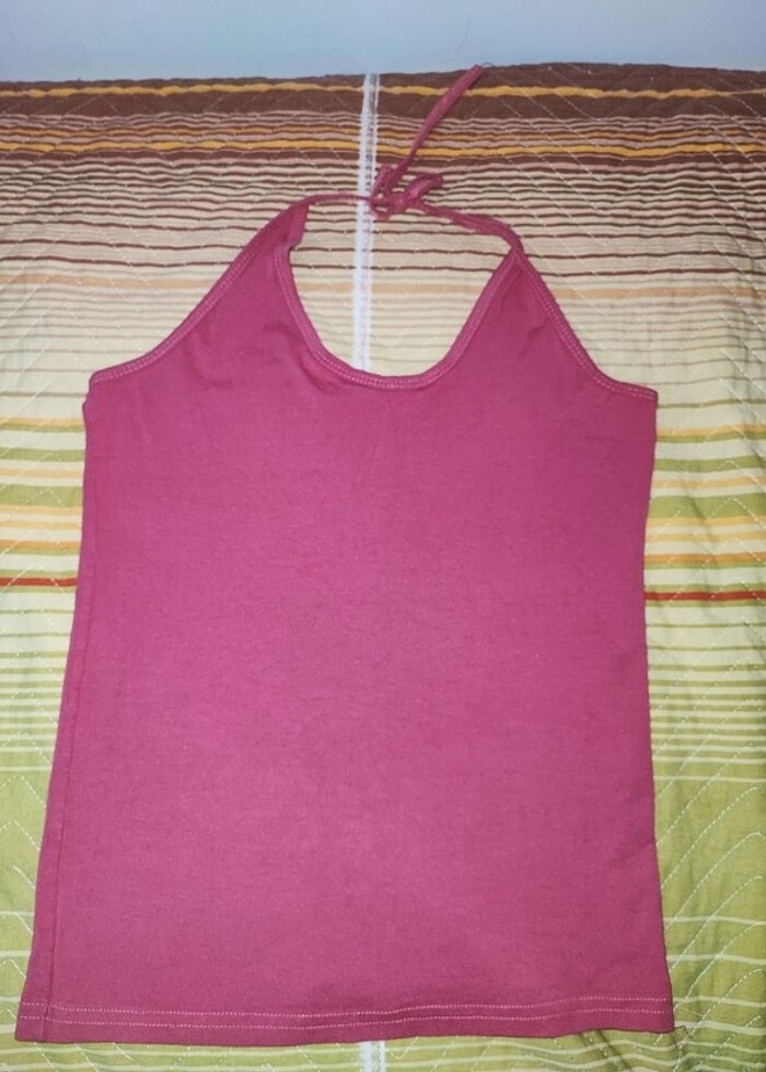 Boyundan bağlamalı bluz.Hicbir sorunu yoktur.