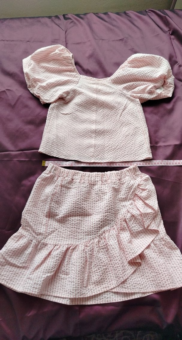 Pembe bluz Etek Volanlu takım Detaylı