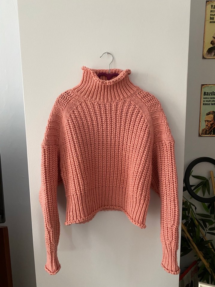 Pastel pembe renkte, kalın crop H&M kazak. Hiç giyilmedi. Small