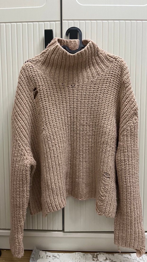 ÇOK İYİ DURUMDA. DELİKLERİ İÇ GÖSTERİR❗️ Badi ile giyilebilir. Pembe renkte, boğazlı, uzun kollu, örgü kadın kazak. Rahat kesimi ve midi uzunluğu ile gündelik kullanıma uygundur.