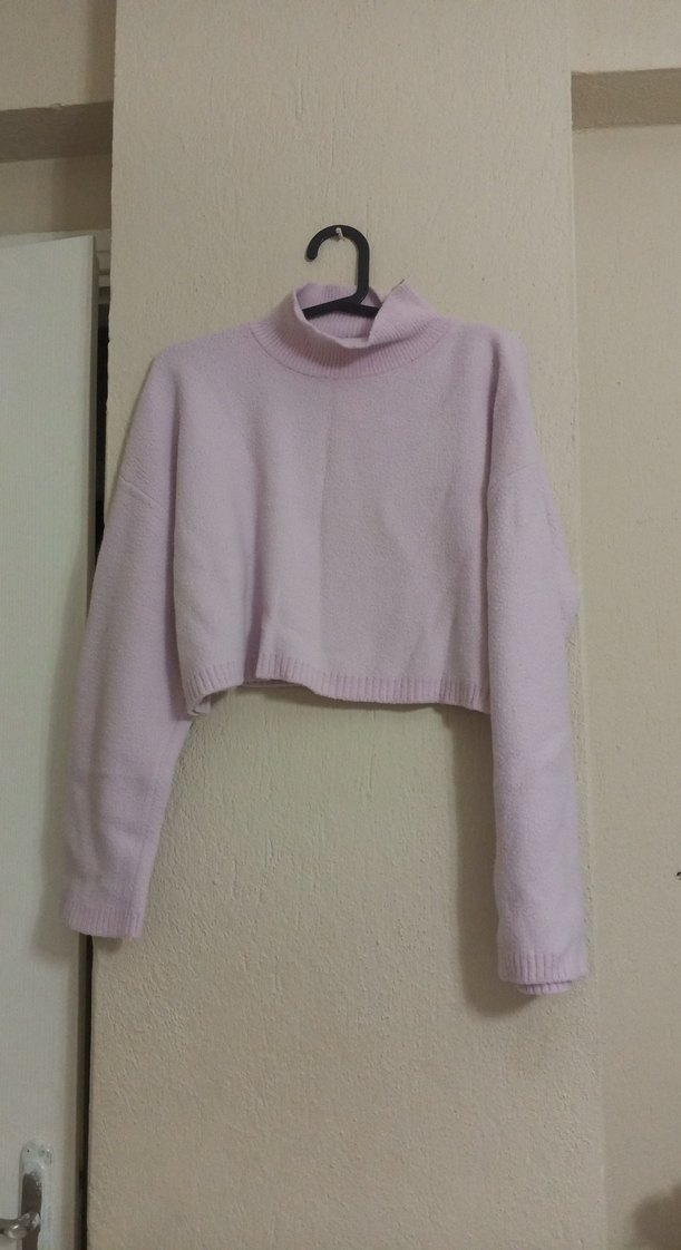 Pembe, boğazlı ve uzun kollu örgü kadın kazak. Rahat kesimi ve midi boyu ile günlük kullanıma uygundur. gögüs 59 boy 41