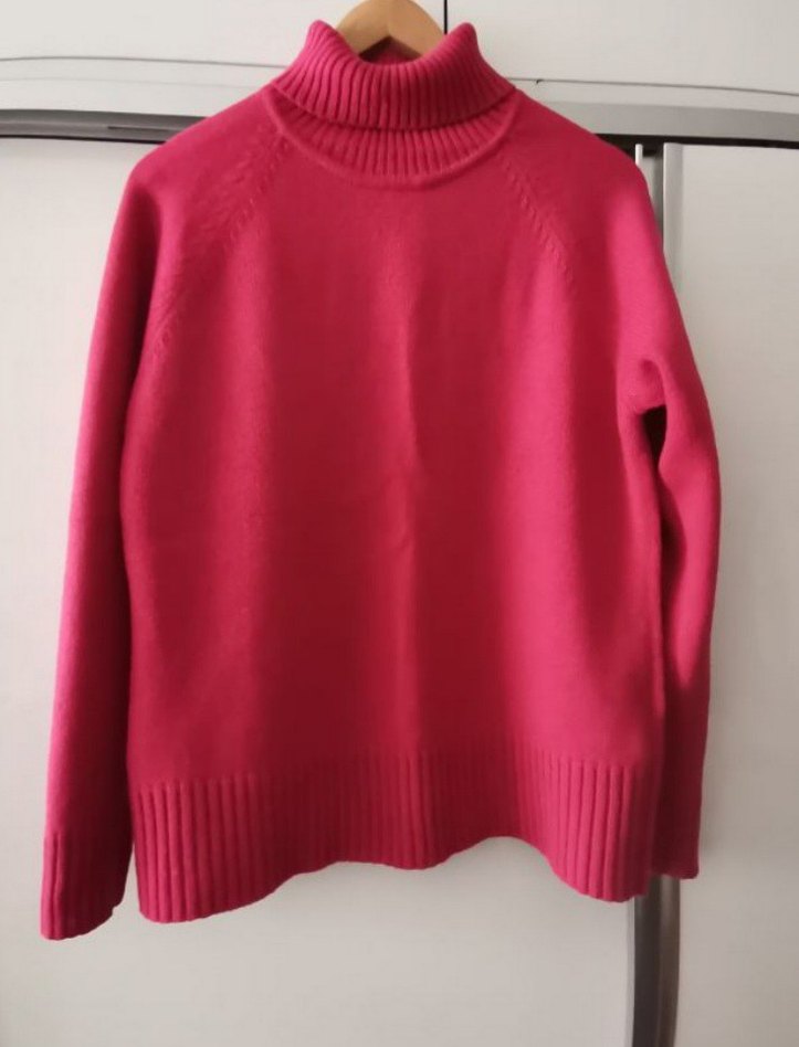 Pembe renkte, boğazlı ve uzun kollu, bol kesim triko kazak. Yumuşak ve sıcak dokusu ile günlük kullanım için uygundur. biraz kolunda tüylenme var ama belli olmuyor