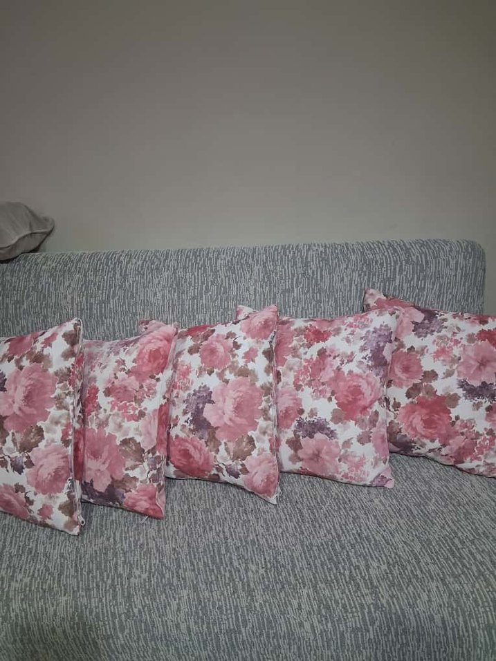 İKEA .Pastel tonlarda, yumuşak pembe çiçek deseniyle bohem tarzda kırlent. içi dolu 0 denecek kadar az kullanılmış iğne ucu kadar lekesi yok o kadar temiz sıfır gibi 5 adet var