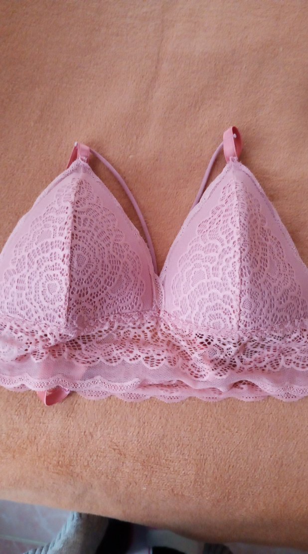 Pastel pembe renkte, kısa boyda, narin dantel detaylı, ince ayarlanabilir askılı, rahat ve bohem tarzda kadın bralet.
