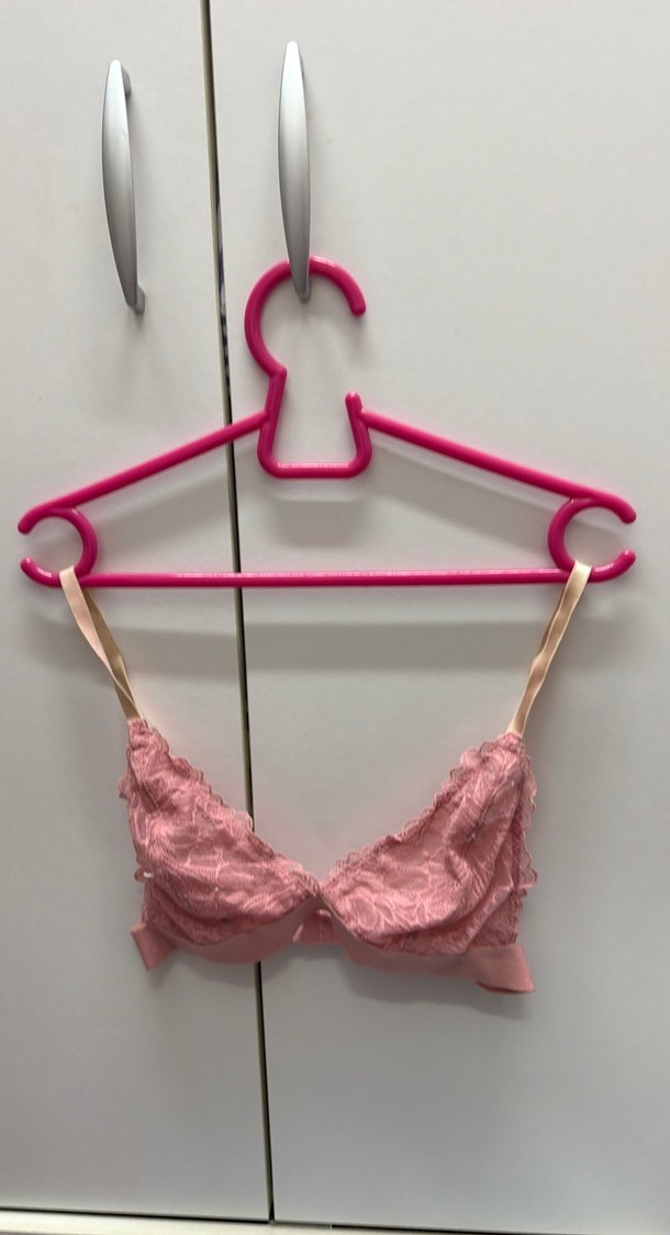 Pastel pembe renkte, dantel detaylı, bohem tarzda normal uzunlukta sütyen.