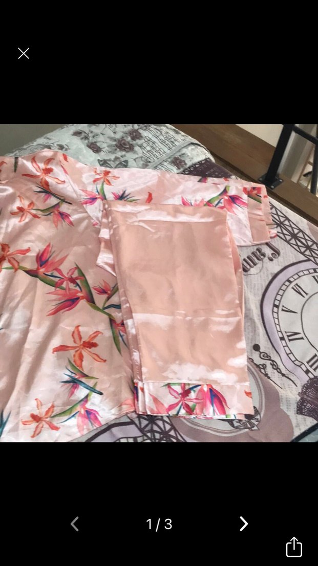 pastel pembe renkte, bohem tarzda çiçekli desenli kadın pijaması. Regular kesim rahatlık sağlar.