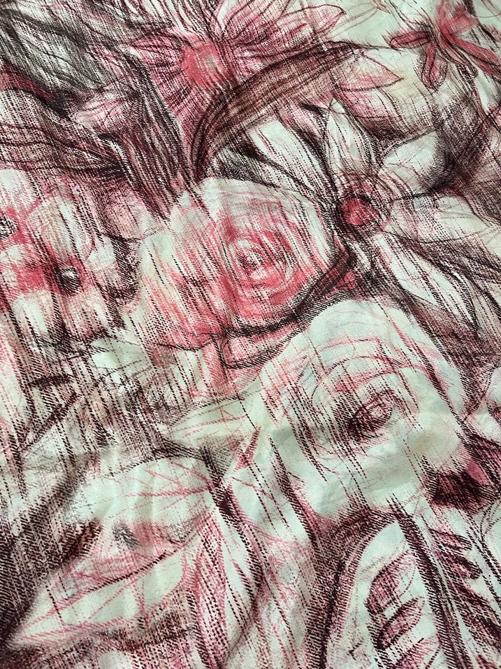 Kadınlar için, yumuşak tekstil kumaşında pastel pembe çiçek desenli drapeli bohem tarzda fular.