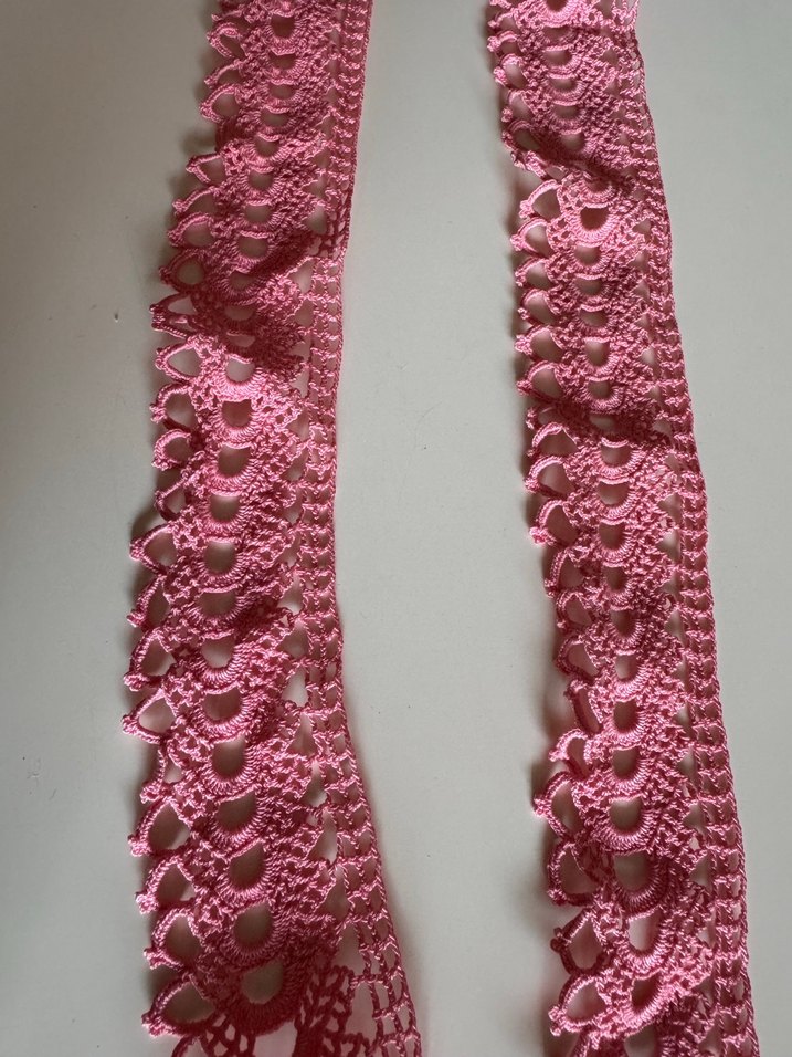 Pembe renkli, bohem tarzda el işi havlu kenarı. Ürün sıfırdır.