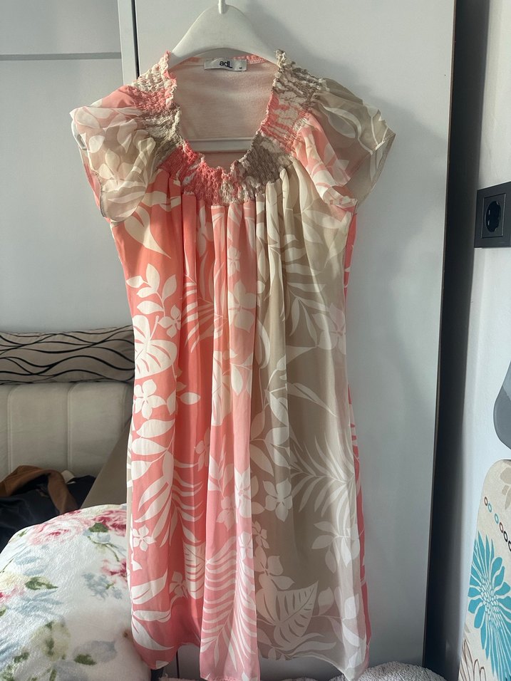 Kolsuz pembe cicekli elbise. Salas bir model bedeni m