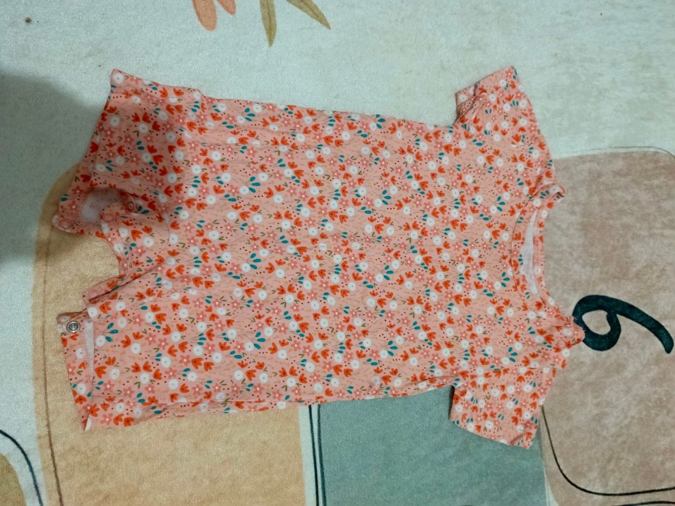 Pembe pastel renkli, çiçek desenli, kısa kollu, bohem tarzda kız çocuk tulun