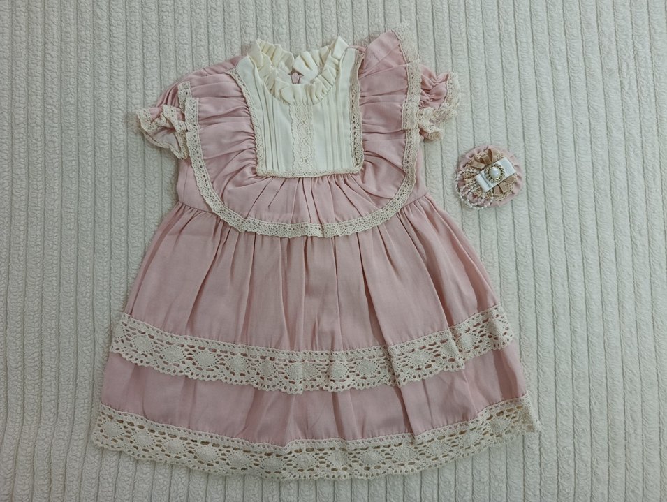 özel dikim. Pembe pamuk kumaştan, fırfır detaylı, straplez yakalı, nakış işlemeli, bol kesim bohem kız elbisesi.