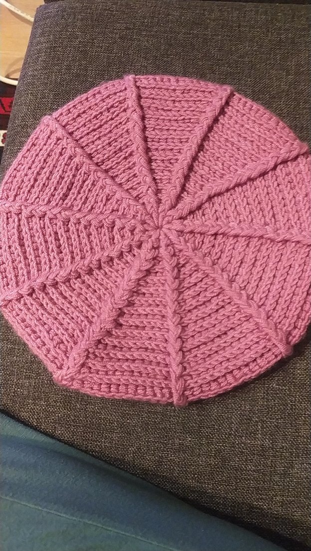 Pembe renkte, örgü dokulu kadın bere. Bohem tarzıyla rahat ve yumuşak dokulu, pastel tonlarda şık bir aksesuar.