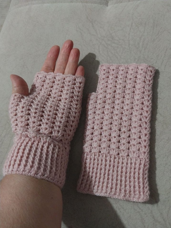 Pembe pastel renkte, örgü bohem tarzda parmakları açık kadın eldiveni. Yumuşak örgü dokusu ile sıcaklık ve rahatlık sağlar.