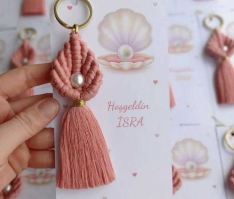 İnci detaylı, pembe bohem püsküllü anahtarlık. kişiye özel hazırlanır 1 adet fiyatıdır