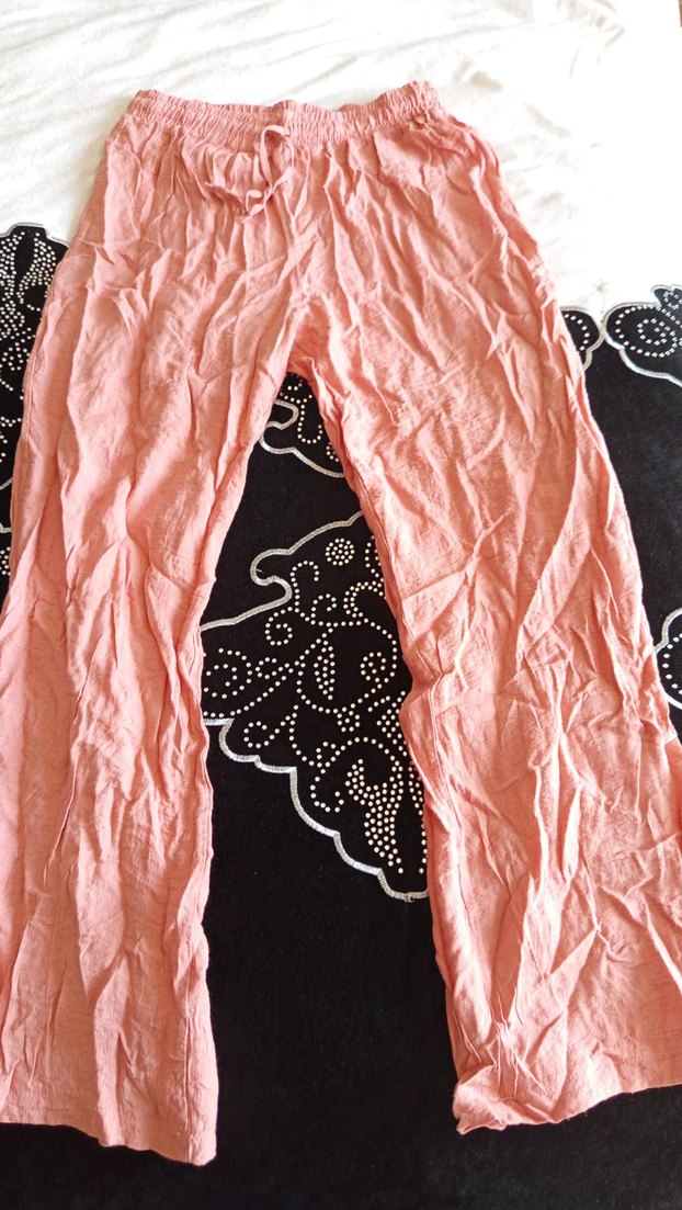 Pembe keten kadın pantolon, bol kesim ve drapeli tasarımıyla rahat ve bohem bir stil sunar.
