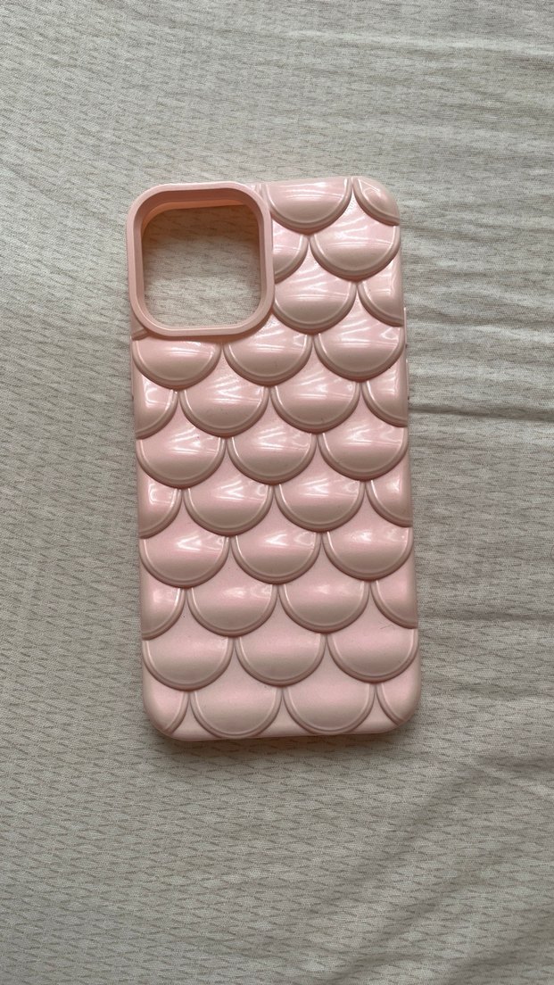 Pembe pastel renkte, fırfırlı bohem tarzı telefon kılıfı. Telefonunuza benzersiz dokulu bir görünüm katıyor.