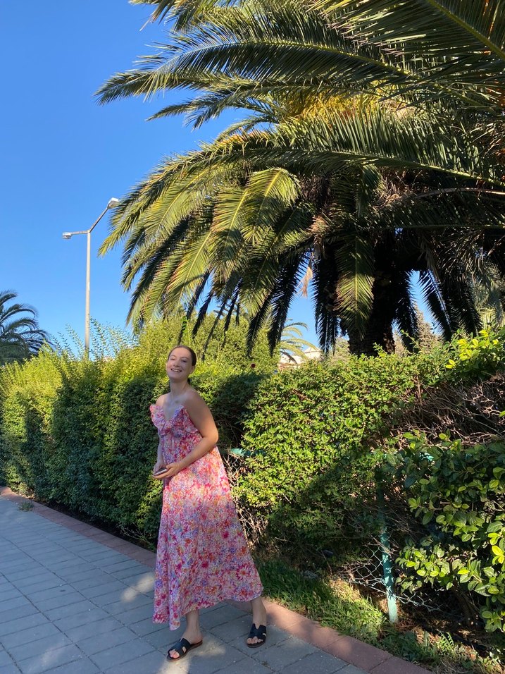 Pembe pastel tonlarda, askılı, straplez yakalı, salaş kesim, uzun ve drapeli ipekimsi kumaştan yapılmış bohem elbise. Outdoor kullanıma uygun.