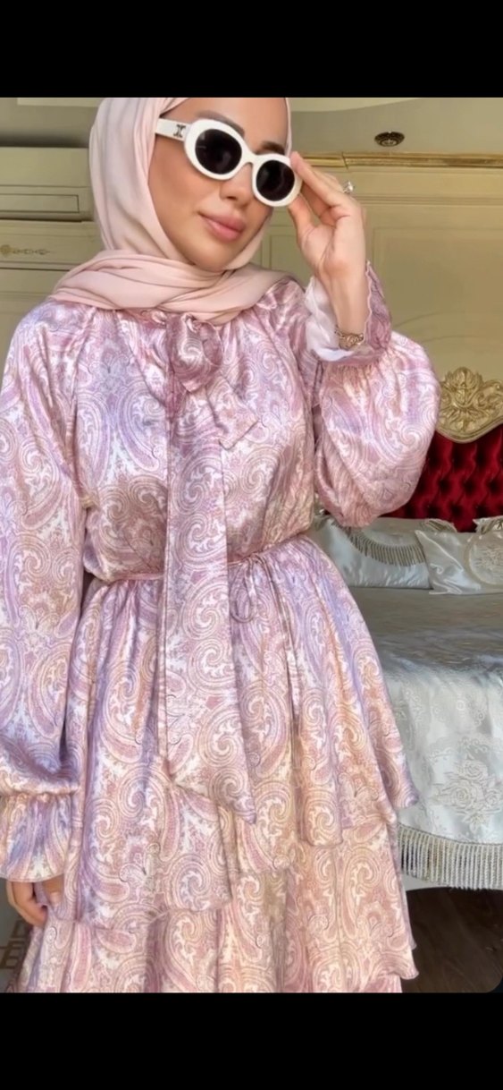 Yumuşak ve ipeksi kumaştan, bol kesim, uzun kollu, yüksek yakalı, pembe pastel tonlarda tie-dye desenli drapeli bohem elbise. Sadece 1 kere giyildi hiç bir rabbelcollectionn 137 boy