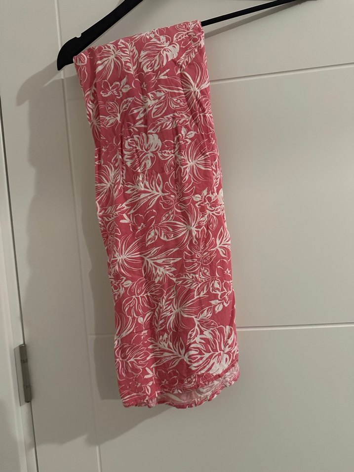 Pembe tonlarda açık renkli, bağlama desenli, bol kesim, drapeli uzun hamile eteği. Bohem tarzını yansıtır, günlük kullanıma uygundur.