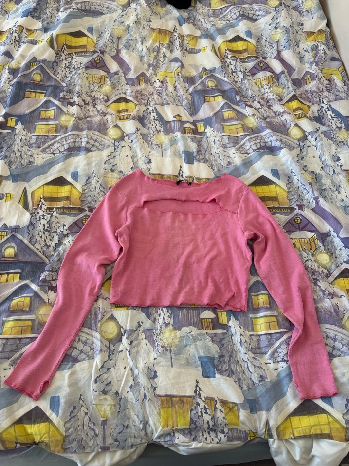 Trendyol marka pembe renkte L beden uyumlu cut-out detaylı ve parmak geçirme yeri olan crop, sadece 2-3 defa giyildi hiçbir defosu bulunmamakta. #zara #mango #bershka #stradivarius #pullandbear #lefties #inditex #primark #lcw #koton #mavi #ltb #hm #defacto #penti