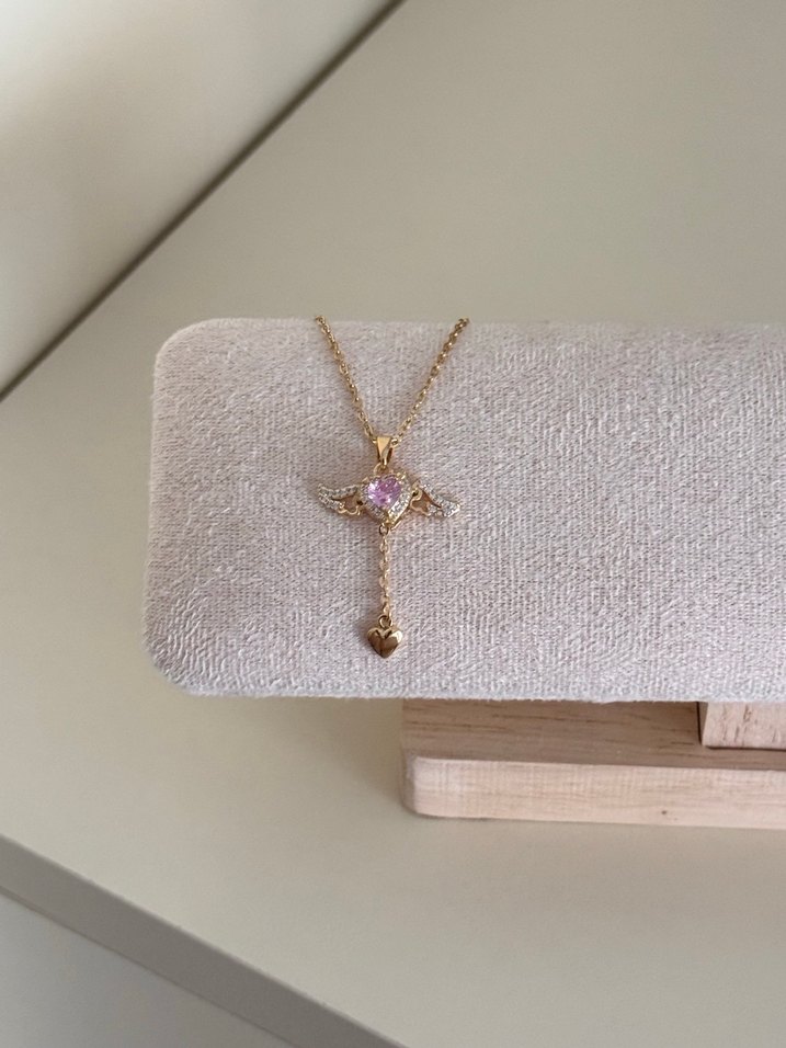 Pembe renkte, zincir detaylı ve baskılı desenli midi uzunlukta bohem kolye, romantik bir gece için Paris esintisiyle klasik zarafet sunar.