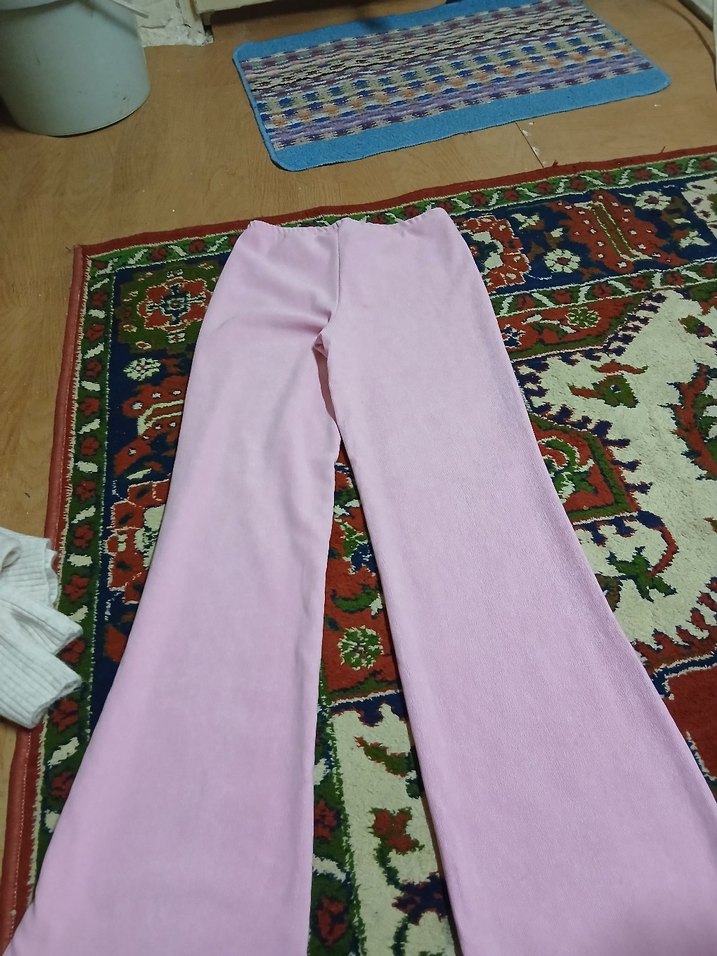 Yumuşak ve rahat kumaştan yapılmış, uzun ve bol kesim pembe pantolon, fermuarlı detay içerir.