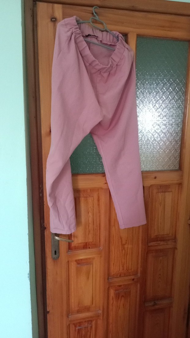 Pembe renk, bol kesim ve midi boy keten kumaş pantolon. Drapeli tasarımıyla rahat ve şık bir görünüm sunar. Notched lapel ve askılı detaylara sahiptir.