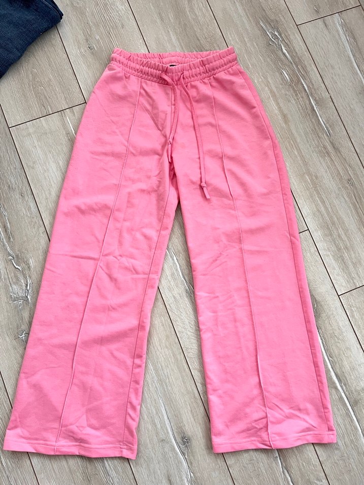 Pembe renk, bol kesim midi boy spor eşofman, bağcıklı bel ve yumuşak sentetik kumaştan. Spor veya sokak stilinde rahat ve şık bir tercih. trendyoldan alındı biraz kullanıldı fiyatı uygun tutuyorum