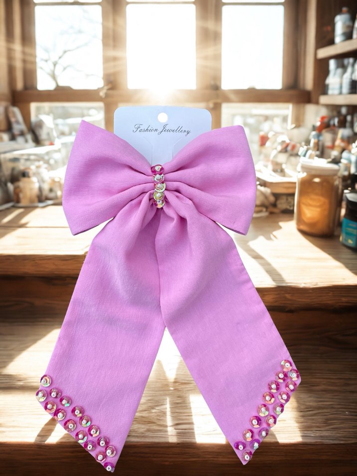 Pembe boncuk işlemeli Fiyonk Saç Aksesuarı