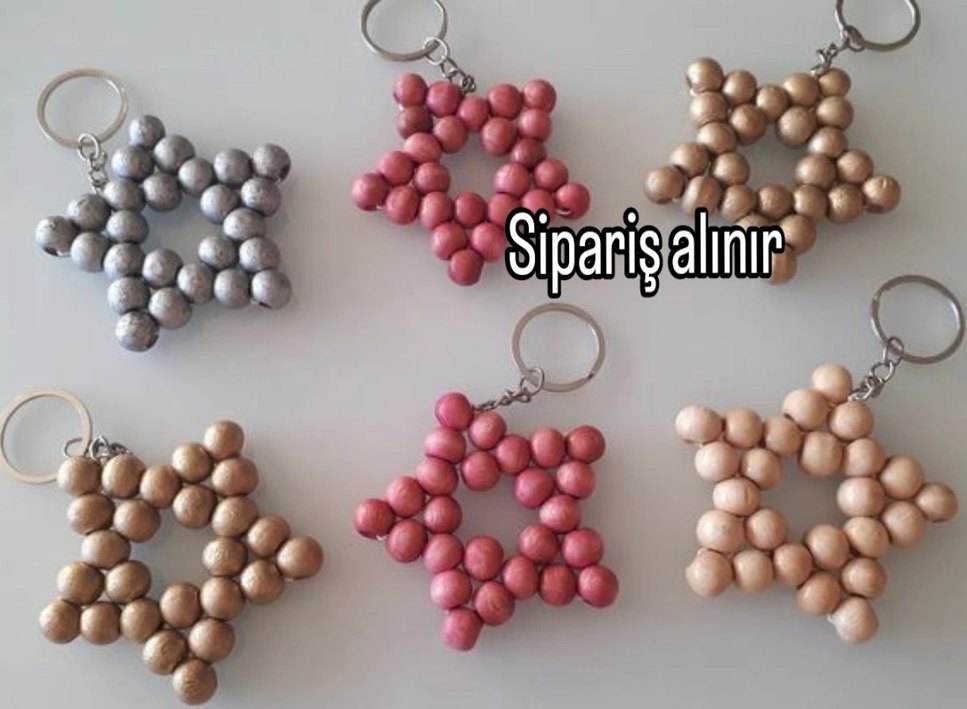 Pastel pembe boncuklardan oluşan, bohem tarzda sade ve minimalist yıldız şekilli anahtarlık. ✨