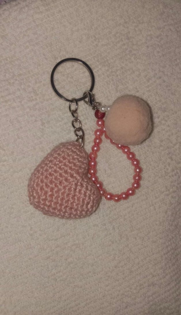 Örgü kalp ve pastel pembe boncuklarla bohem tarzda, rahat ve retro görünümlü anahtarlık. Anahtarlarınıza yumuşak bir dokunuş katıyor. Bunları arkadaşım yapıyor destek olursanız sevinirim