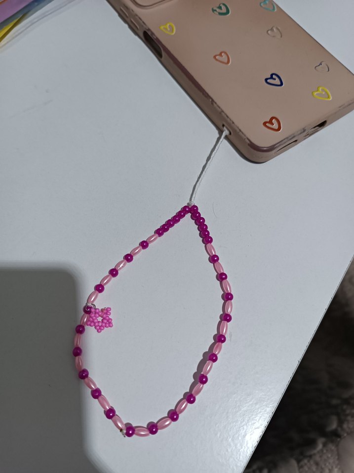 Pembe boncuklarla yapılmış, nakış desenli bohem tarzda kadın charm. Günlük kullanıma uygun, renkli bir dokunuş sağlar.