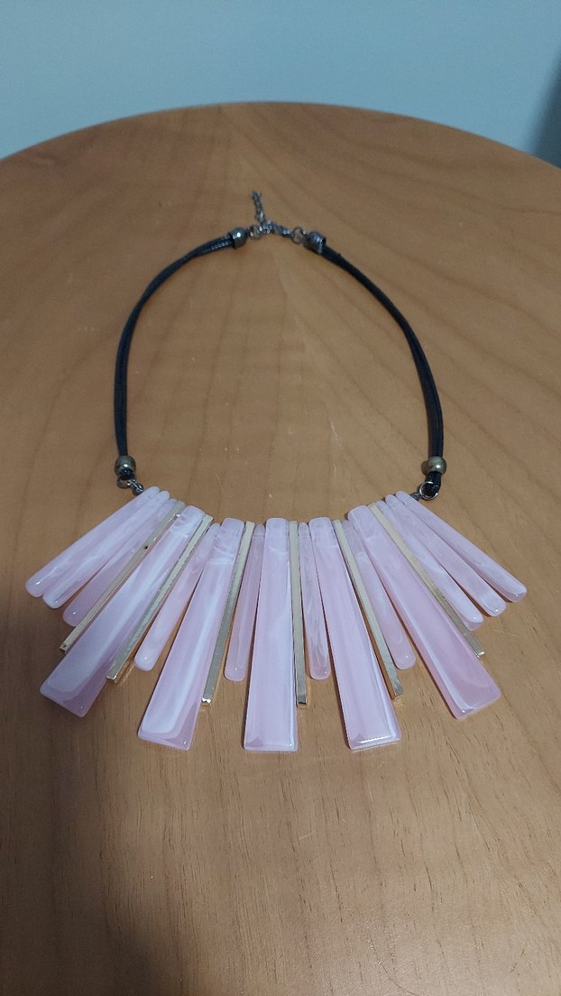 Pembe boncuklu, siyah ipli bohem tarzda midi uzunlukta günlük kullanım için uygun kolye. ✨