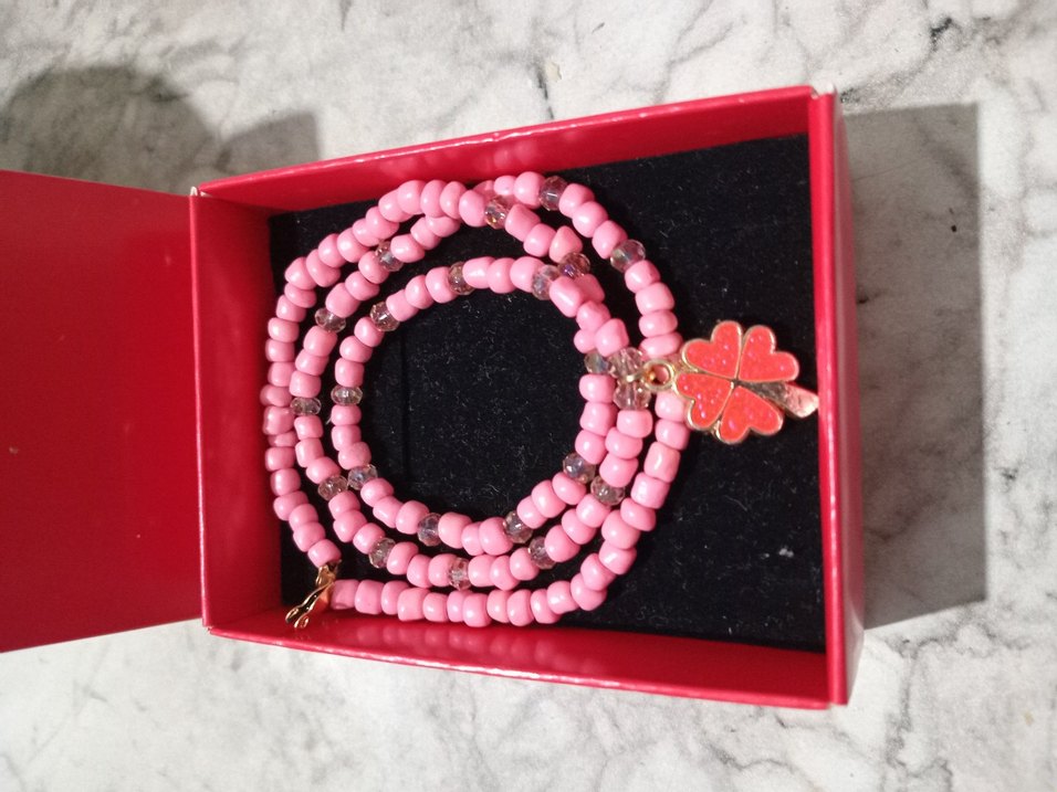 Pembe Boncuklu Çiçek Kolye Yonca Kolye