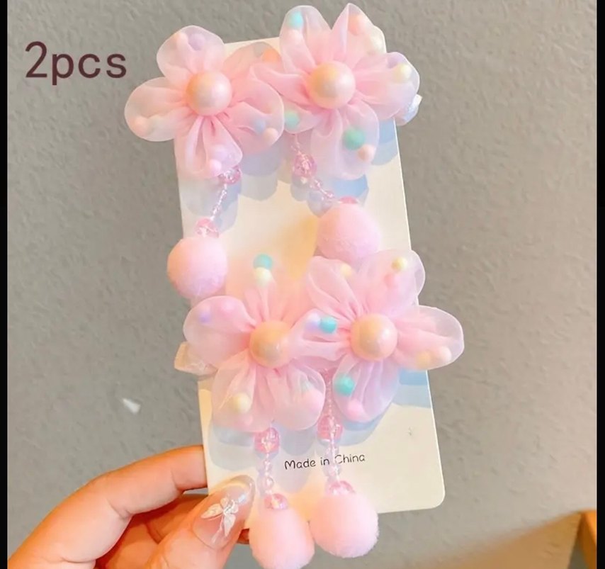 Pembe Boncuklu Çiçekli Çocuk Saç Tokası
